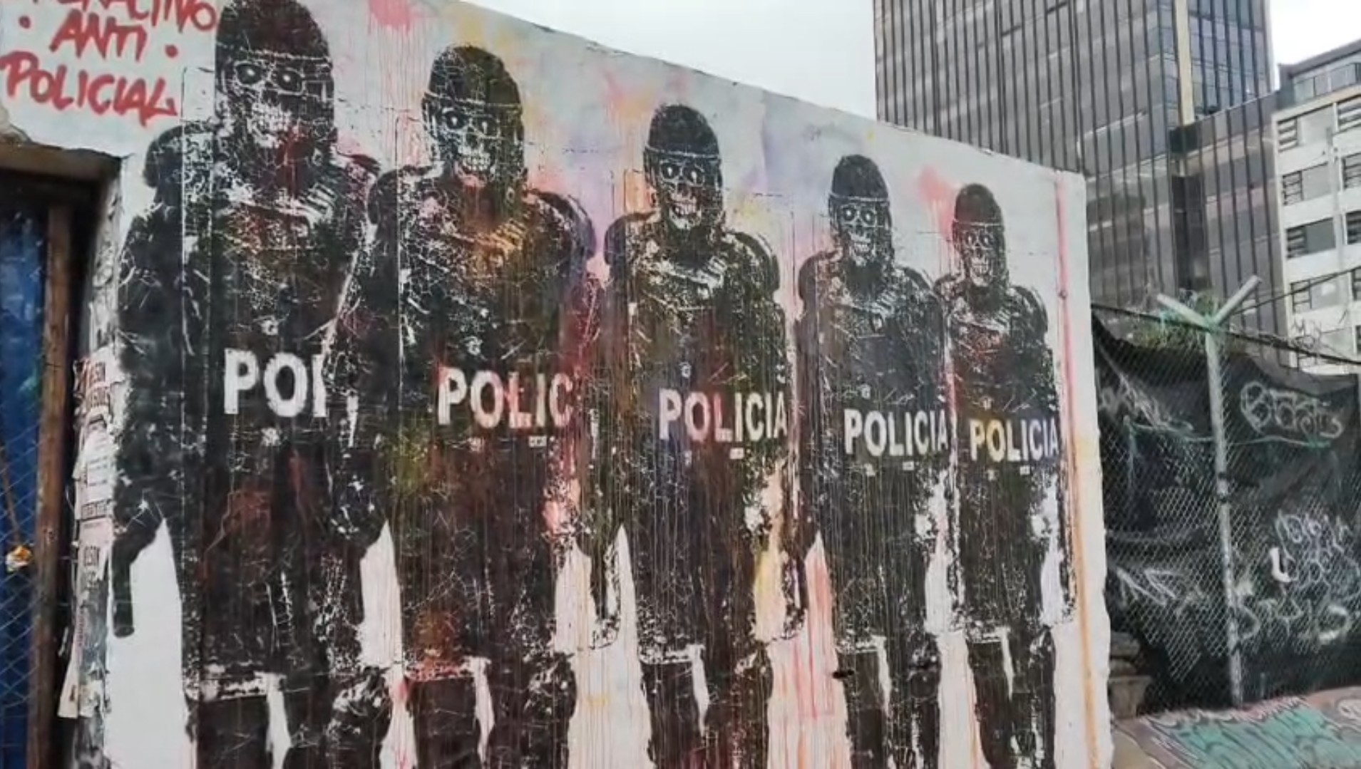 El muro utilizado es el único pedacito pintable que queda en el céntrico solar sin edificar de la carrera 7ª con la 19. Ese pequeño muro ha servido de histórico «altavoz» para reclamos, homenajes y memoria. En el mapa Imborrables apenas hemos recogido un par de ellas: el homenaje a Nicolás Neira de 2023 (EM 158 · Peligro) y el viejo mural de los + de 20.000 desaparecidos (EM 70 · Mural desaparecidos 7ª).